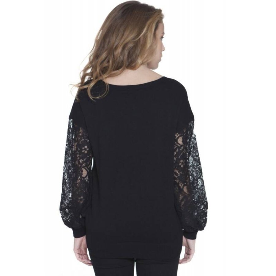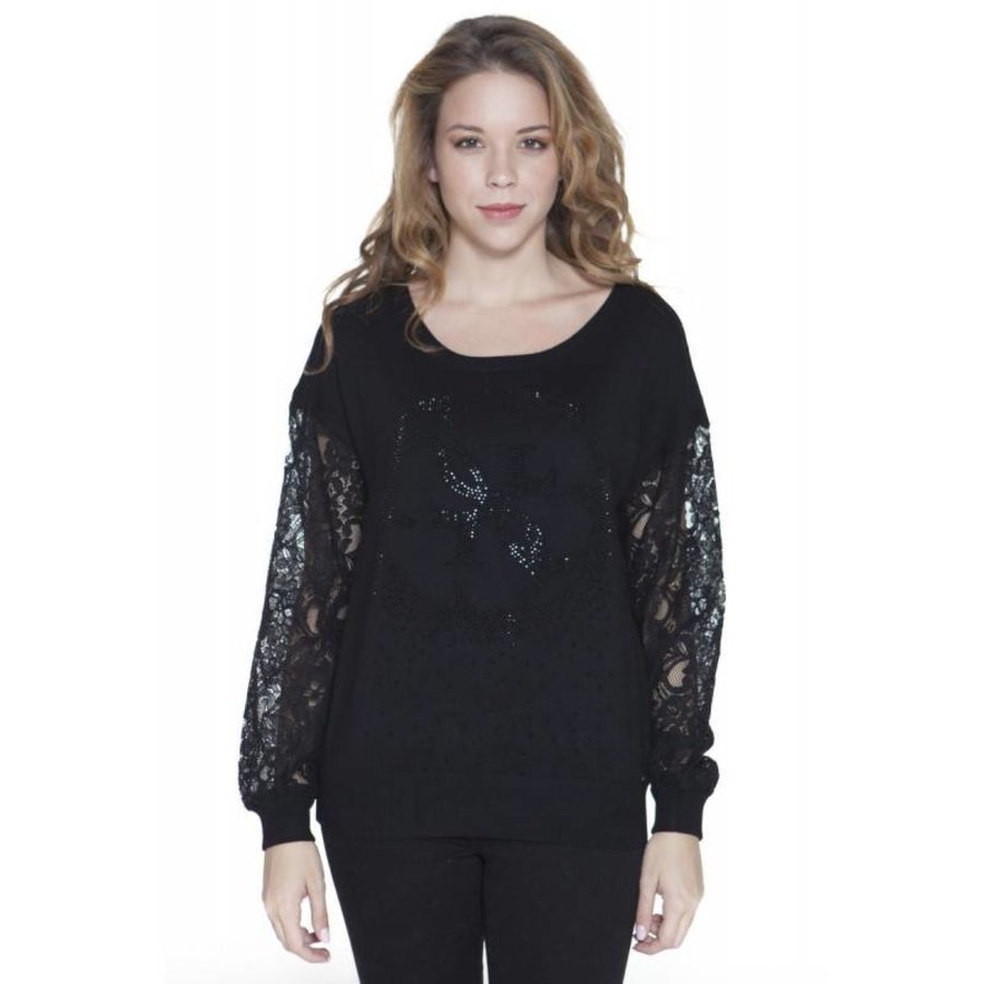 <p>Dames trui guess jeans shirt met lange mouwen en ronde hals strass veters logo trui<br />70% viscosa 30% polyamide<br />Kleur: zwart</p>